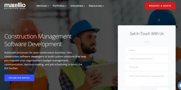 Matellio also specializes in developing full-fledged Canada construction management software and has in-depth industry experience.
